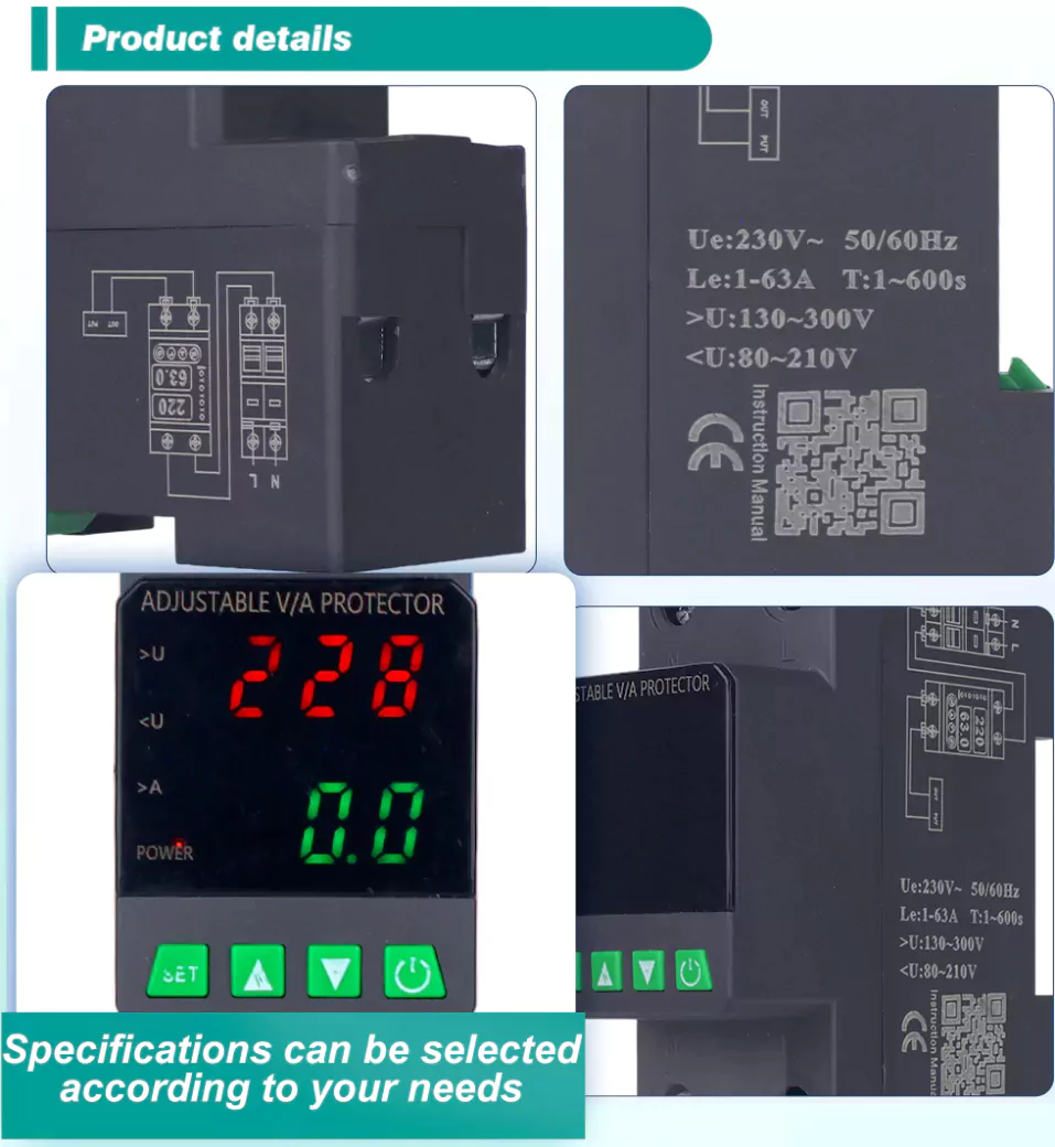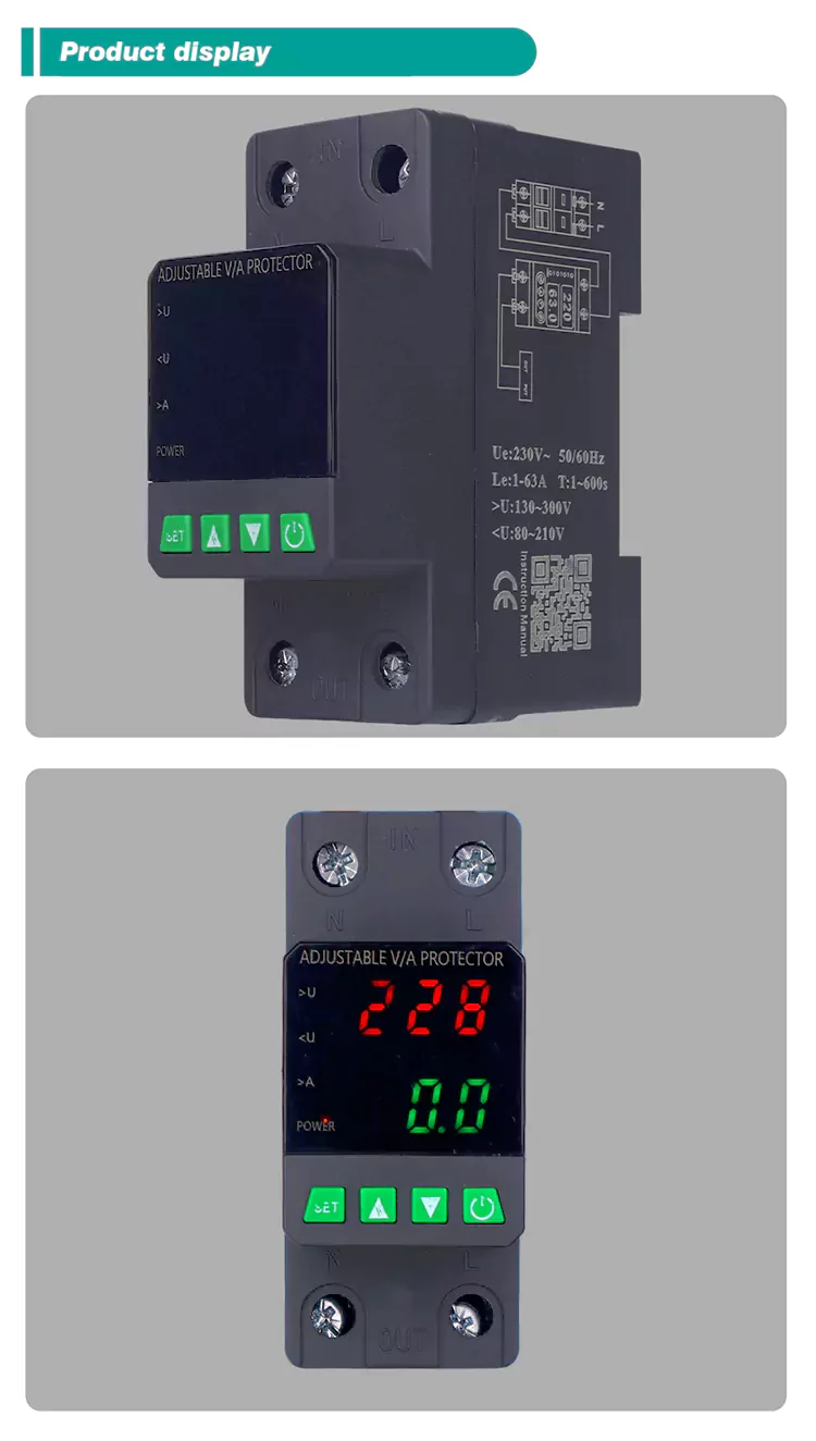 Dilengkapi dengan layar digital dan diproduksi dengan komponen elektronik modular impor, memiliki keandalan dan kinerja yang tinggi. Pelindung secara otomatis dan cepat memotong catu daya selama tegangan abnormal (seperti tegangan berlebih, undervoltage, atau fluktuasi grid) dan mengembalikan catu daya setelah tegangan kembali normal.