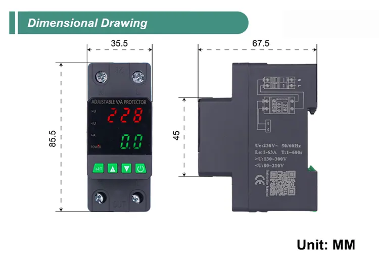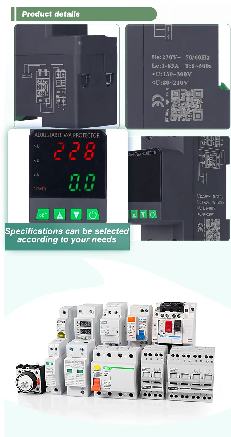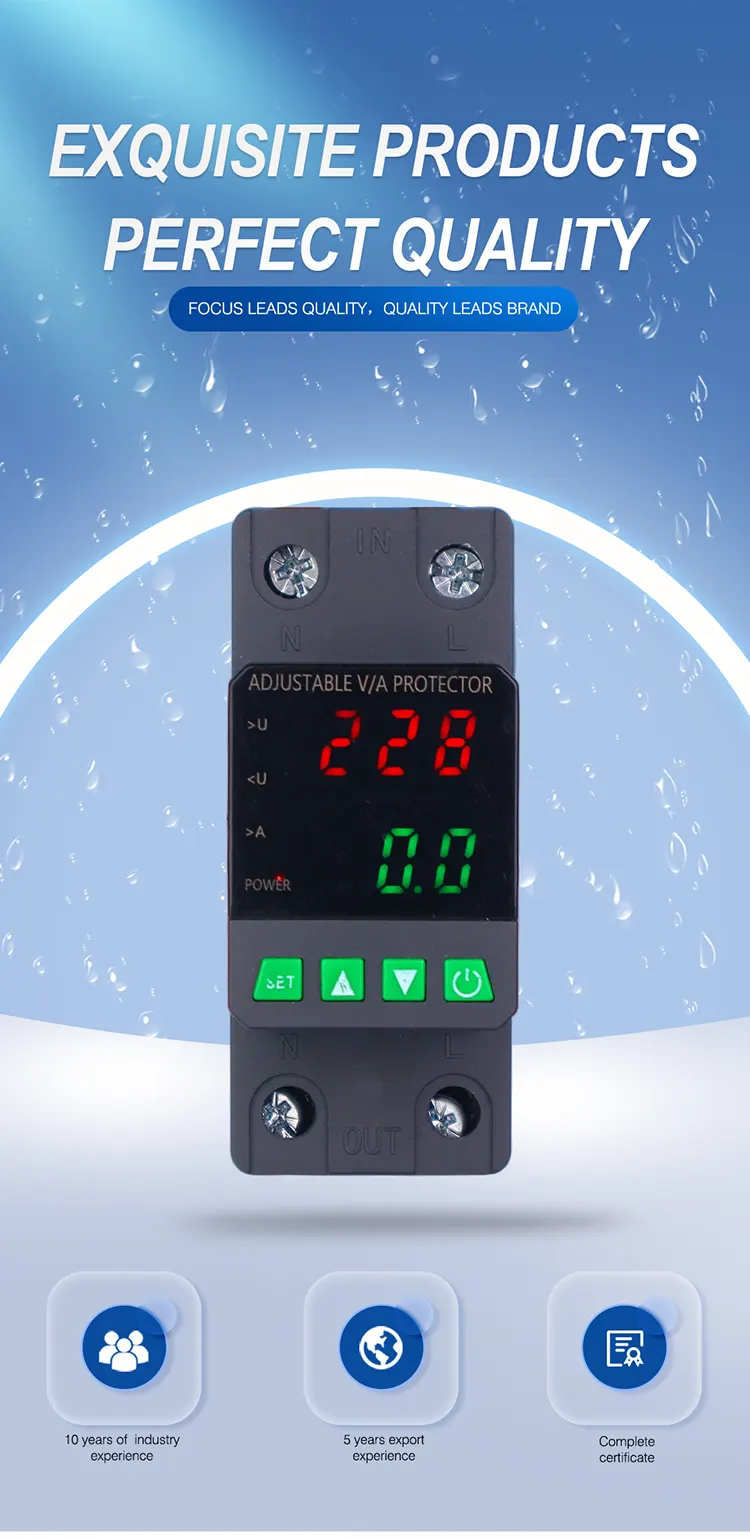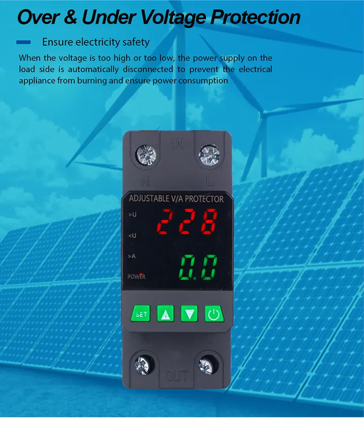 Dilengkapi dengan layar digital dan diproduksi dengan komponen elektronik modular impor, memiliki keandalan dan kinerja yang tinggi. Pelindung secara otomatis dan cepat memotong catu daya selama tegangan abnormal (seperti tegangan berlebih, undervoltage, atau fluktuasi grid) dan mengembalikan catu daya setelah tegangan kembali normal.