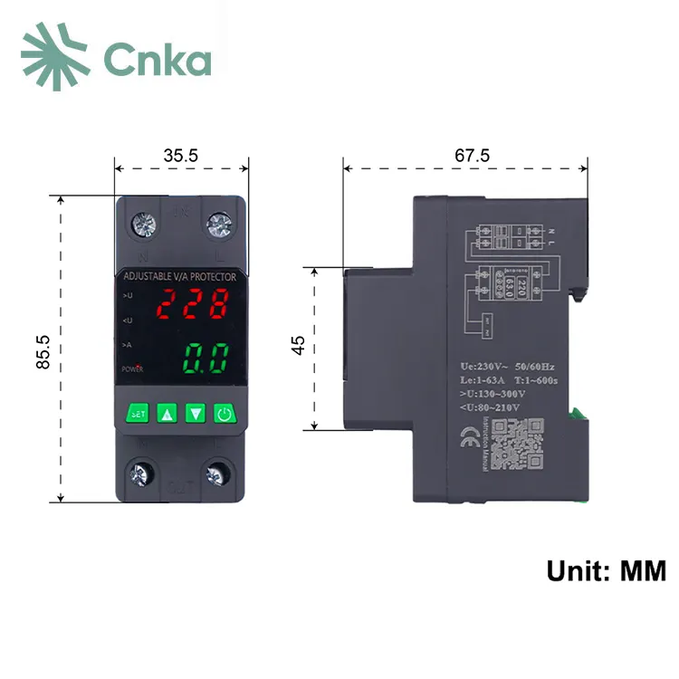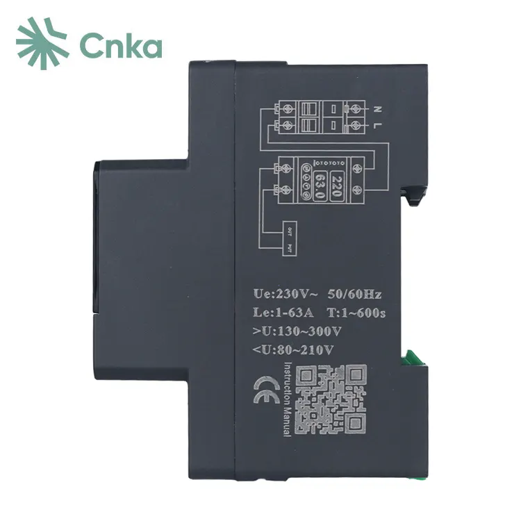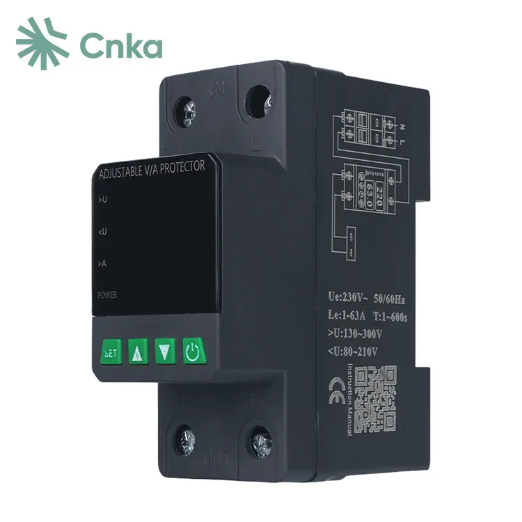 CNKA adalah pemasok Cina terkenal yang menyediakan grosir pelindung tegangan tampilan ganda mereknya. Perangkat ini dirancang khusus untuk sirkuit AC 220V fase tunggal, 50Hz dengan arus pengenal 63A, menjadikannya pilihan ideal untuk melindungi kotak distribusi perumahan atau kabel yang memasok daya ke peralatan fase tunggal.